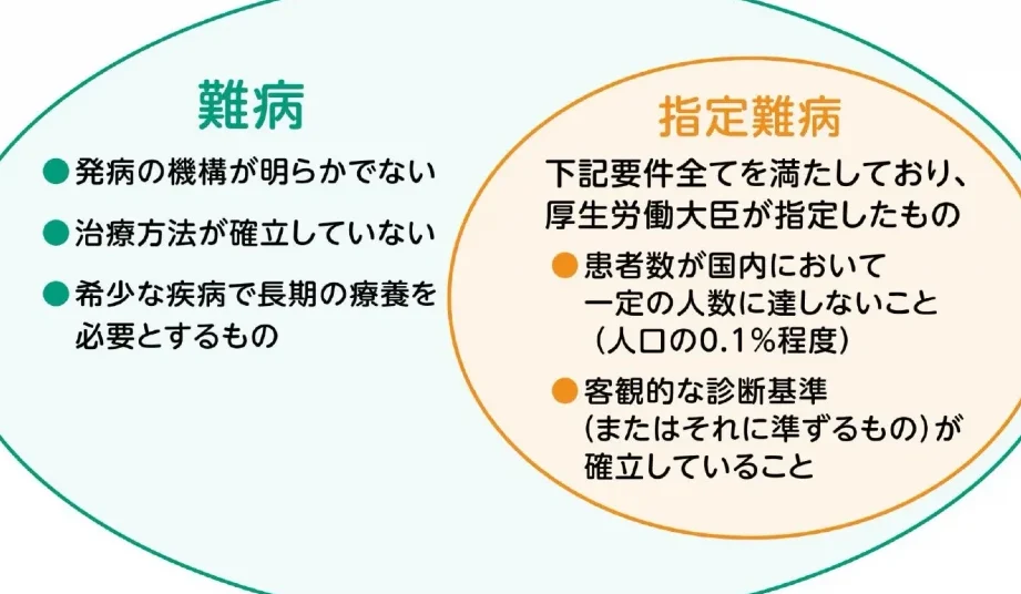 - 指定難病の特定例: 患者数が多く、治療法が確立されている病気が中心です。