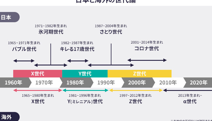 ゆとり世代は他の世代と異なる特徴や価値観を持っています。このセクションでは、バブル世代とZ世代との比較を行います。