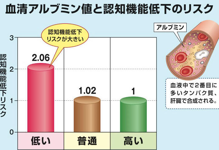 - 栄養状態: アルブミン値の低下は、食事からの栄養摂取不足を示すことがある。