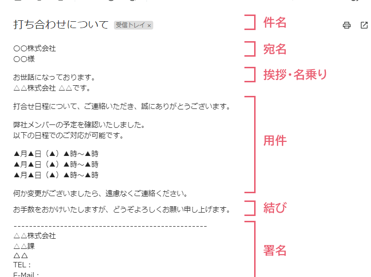 - 日時の選択肢を複数用意する。 一つだけではなく、2〜3日を提案することで、相手が選びやすくなります。