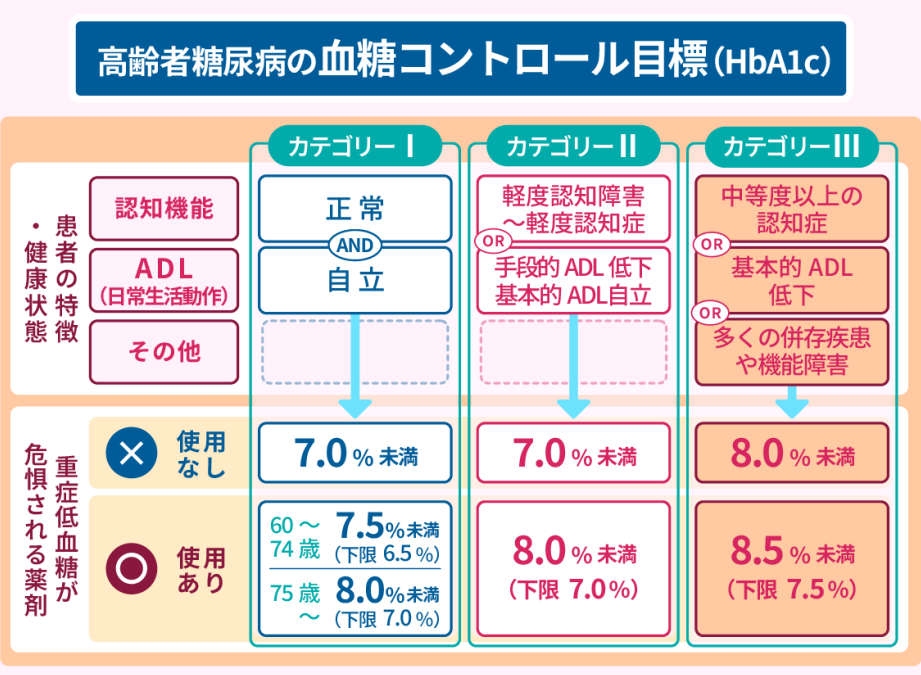 健康状態は、HbA1cの目標値に直接影響します。私たちが考える必要がある点は、以下の通りです。