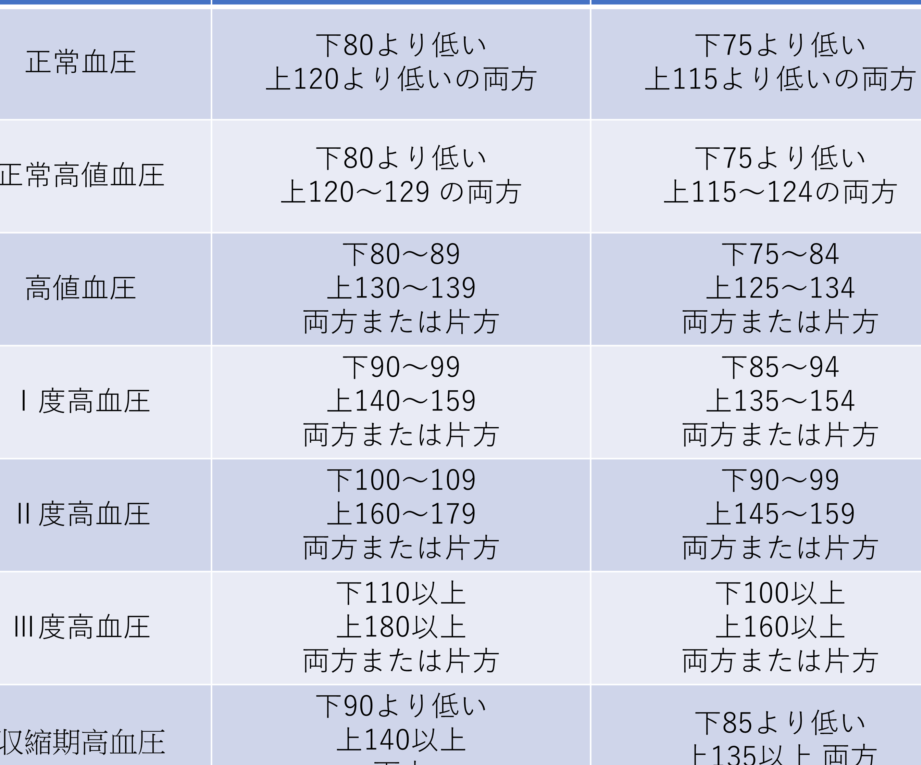高血圧の分類には、特に特定の基準が設けられています。恣意的な区分ではなく、医学的な見解に基づいています。以下に分類を示します。