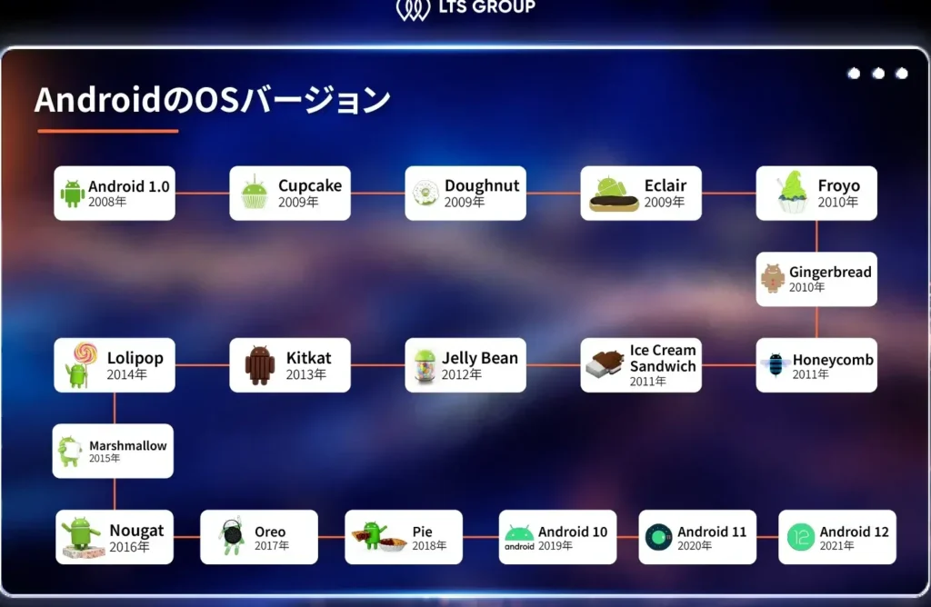 - Android 4.0 (Ice Cream Sandwich): 新しいユーザーインターフェースを持ち、タブレットとスマートフォンの融合を実現。