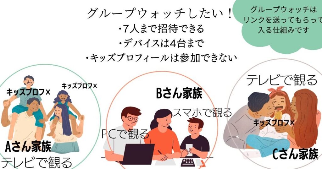 ファミリーアカウントでは、複数のプロフィールを作成でき、家族全員がそれぞれの好みに合わせたコンテンツを楽しむことができます。最大で7つのプロフィールを設定できるため、視聴履歴の管理が非常に便利です。また、親の管理機能を使うことで、子ども向けコンテンツの制限や年齢制限を設定できます。これにより、安心して家族全員が視聴できる環境を実現します。