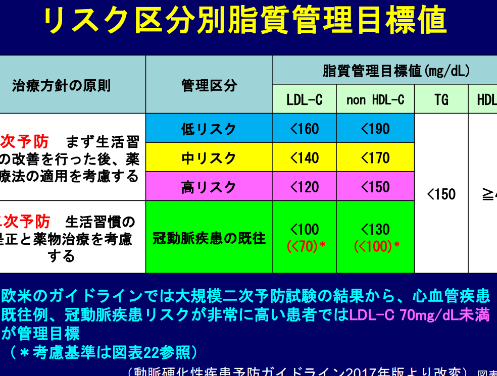 数値がこれらの範囲に入ると、心疾患や脳卒中のリスクが高くなります。さらに、他の危険因子(高血圧、糖尿病、喫煙など)がある場合、治療開始の重要性は増します。我々の健康管理において、定期的な検査を行い、適切な判断が求められます。