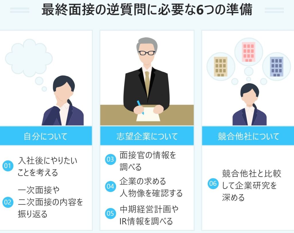 - 会社の将来像についての質問: 会社が目指す目標や展望に関して尋ねることで、戦略的なビジョンを理解する。