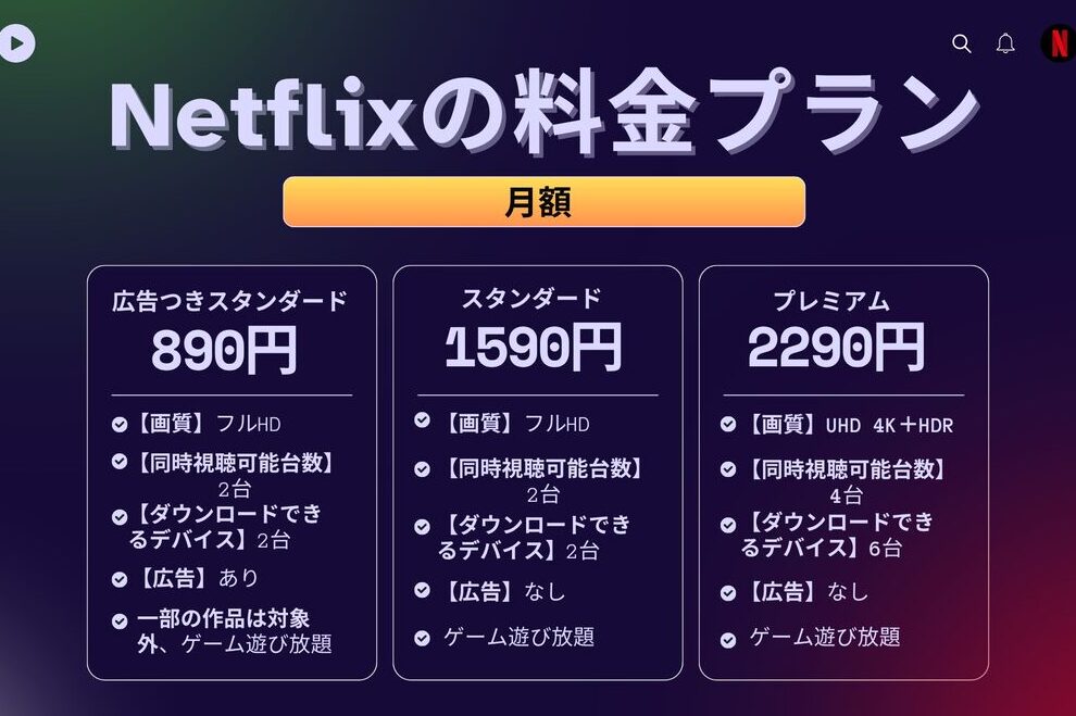 Netflixのアカウントには、主に3つのプランが存在し、それぞれにユニークな特徴があります。これらのプランは視聴体験や機能性において異なるため、自分たちのニーズやライフスタイルに合わせて選ぶことが大切です。ここでは各プランについて詳しく見ていきましょう。