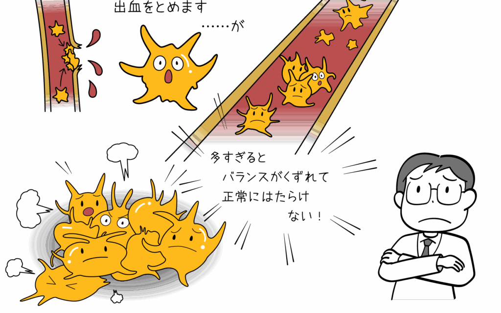 一方で、過剰な血小板数もまた問題を引き起こします。