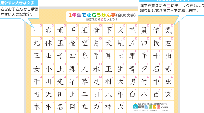 ### 小学1年生で習う基本的な漢字