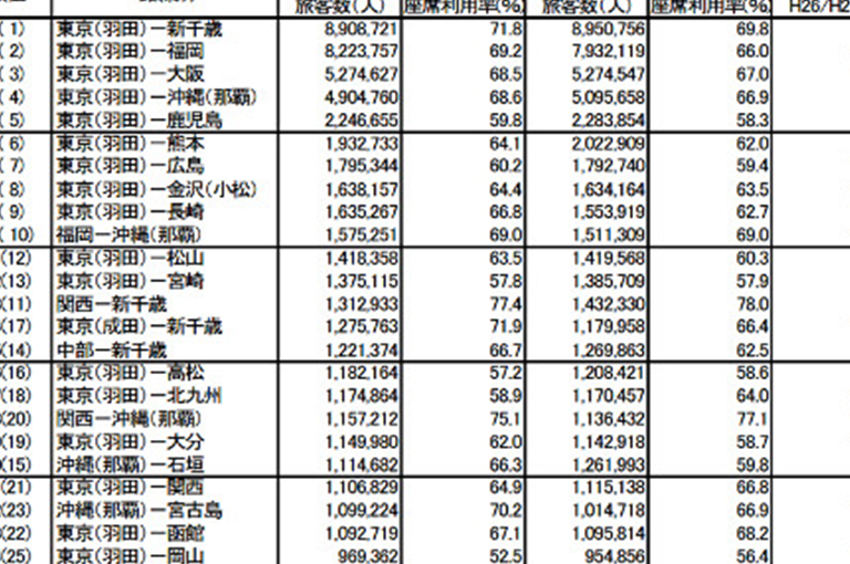 | 空港名 | 年間利用者数(万人) | 発着便数(日平均) |