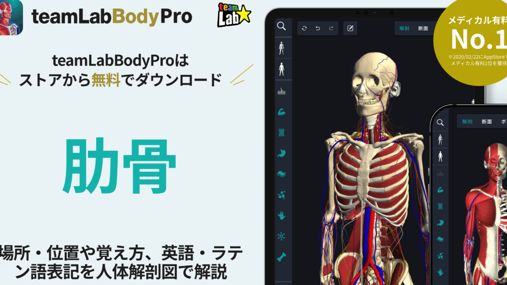 - 浮遊肋(ふゆうこつ):残りの2対(4本)は前方で胸骨と接続しておらず、「浮遊肋」と呼ばれています。