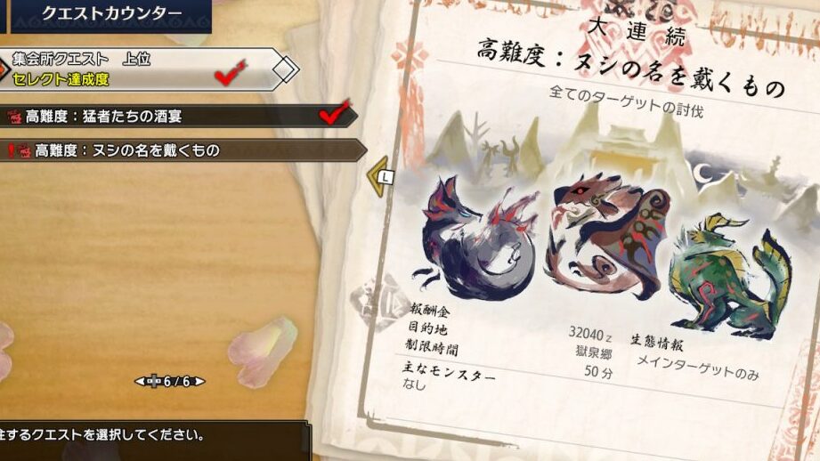 - 効率よく討伐できるモンスター: 自分が得意とするモンスターとの戦闘は短時間で終えることができ、その分多くのクエストを回すことが可能です。