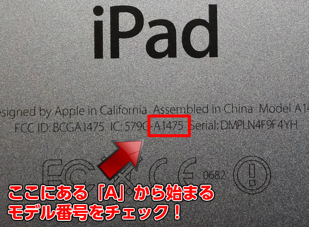 - wifiモデルの場合: iPad背面下部近くに刻印されています。