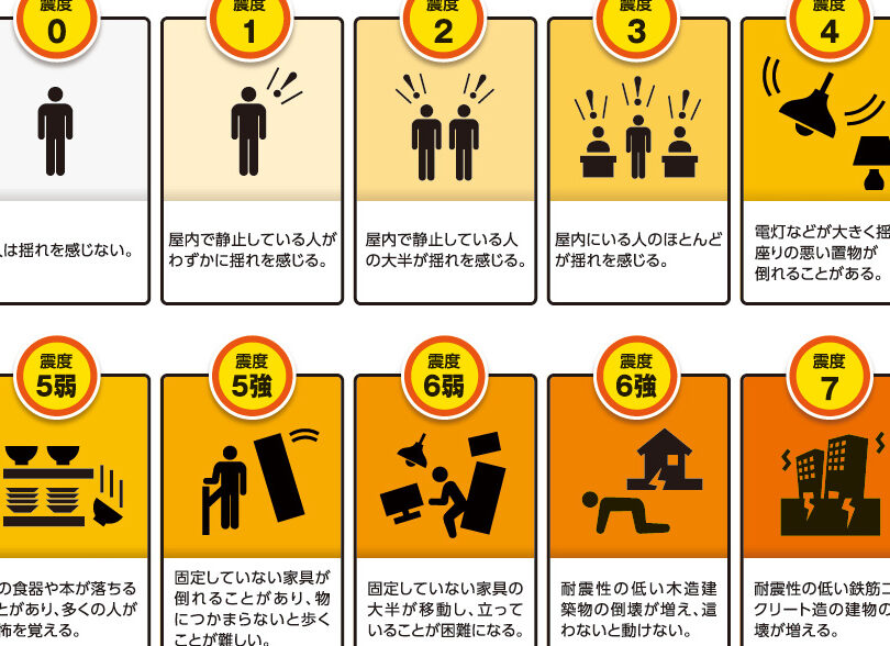 - 中程度の揺れに該当し、この範囲内で発生した地震では多くの場合、一時避難所の設置や地域住民への注意喚起が必要となります。また、古い建物や耐震基準を満たしていない構造物については、そのリスク評価と補強工事も重要です。