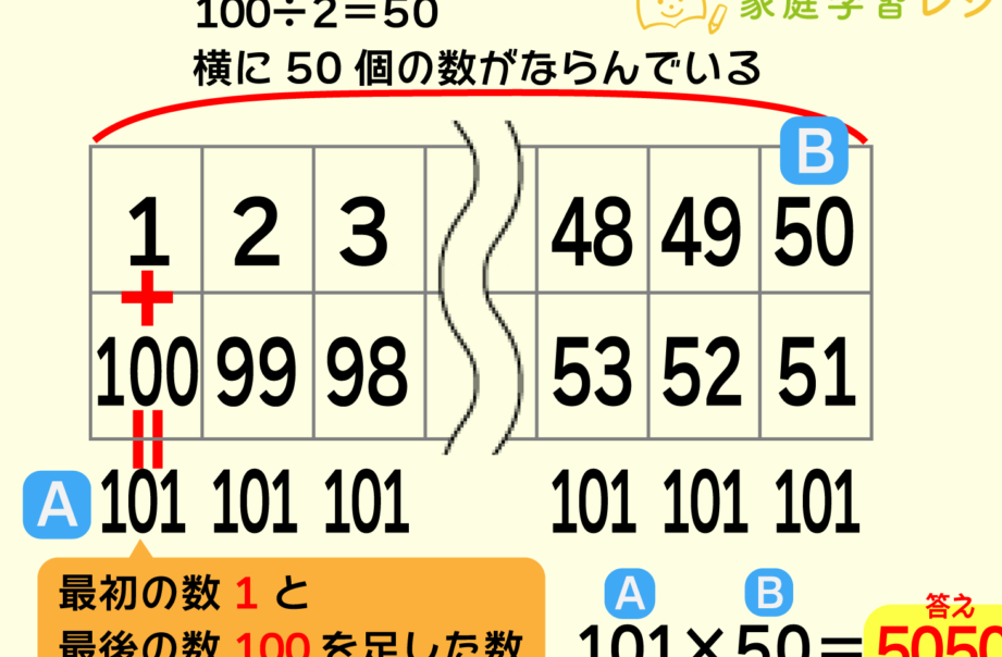 こうした方法によって、「1から100まで足すといくつ」という問いへの興味も引き出されます。