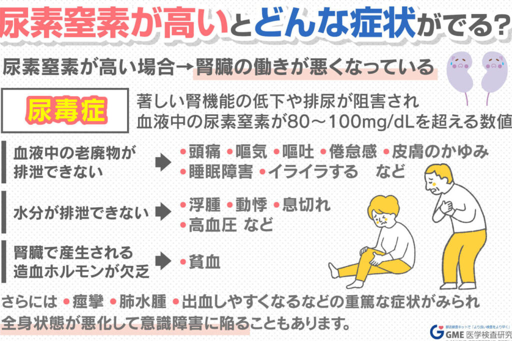 高齢者において異常な尿素窒素値は、いくつかの健康問題と関連しています。その中でも特筆すべきものには以下があります: