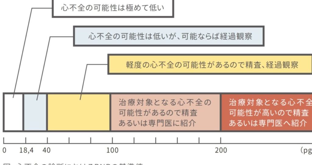 - 正常範囲内: BNPが基準値以下の場合、心不全の可能性は低いとされます。