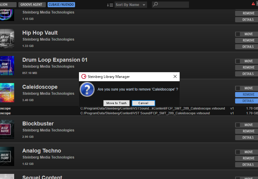 サウンドライブラリやサンプルパックが移動または削除された場合も同様にエラーが発生します。この際には以下の方法があります: