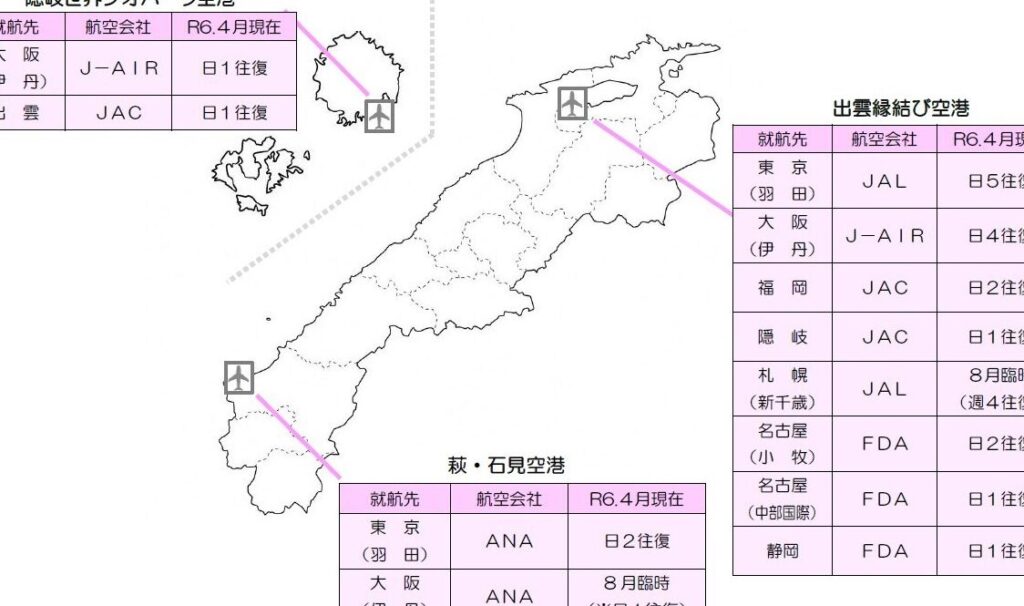 島根県内の主要な空港一覧
