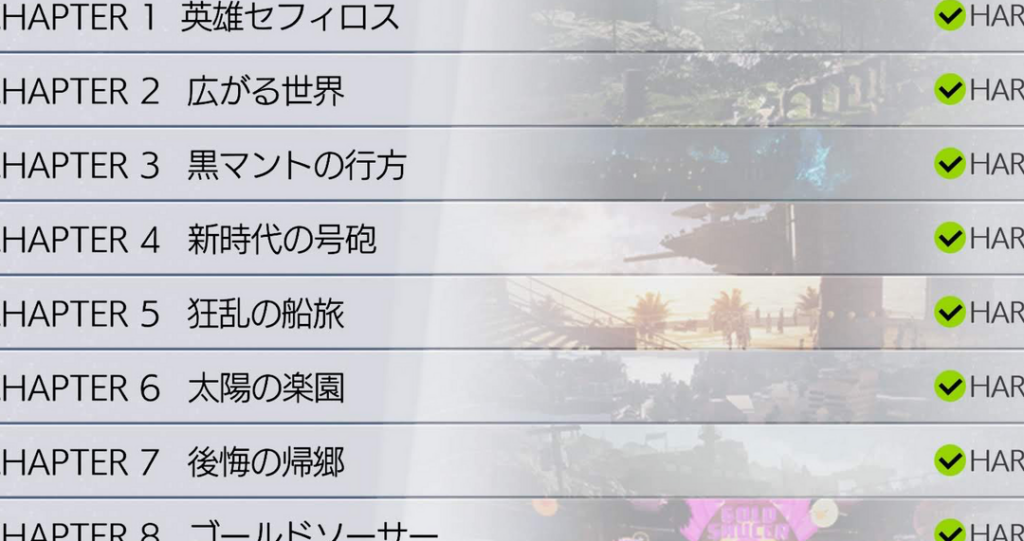 - 現在のチャプター番号やクリアしたチャプターが表示されます。