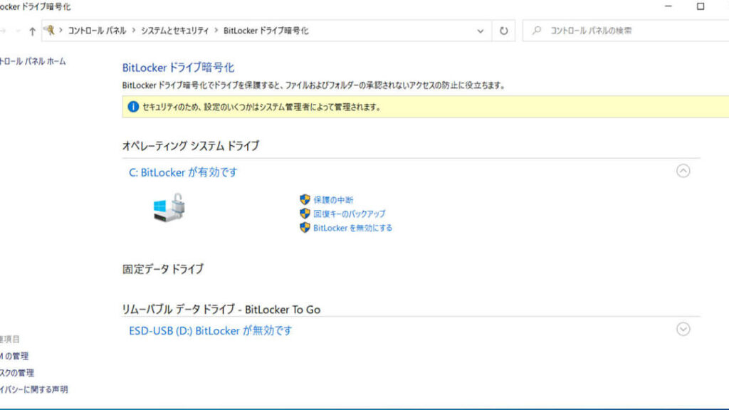 システム管理者によるBitLockerのセキュリティ設定