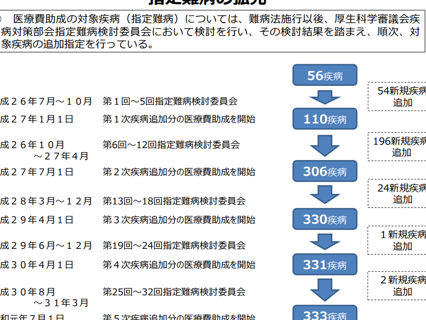 現在、日本国内で登録されている指定難病の数は、2023年時点で約330種類に達しています。この数字は、医療技術の進歩や新たな研究によって定期的に見直されており、今後も増加する可能性があります。指定難病の一覧はいくつありますかという問いには、このように具体的な数値を用いることでより明確な情報が得られます。