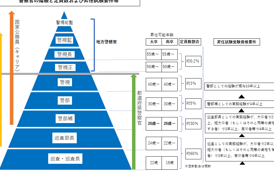 日本の警察組織における階級制度は、明確で体系的な構造を持ち、その運営の効率性を支えています。各階級間には厳格な序列があり、それぞれが特定の役割や責任を果たすことで、全体としての機能が維持されています。この階級制度は、日本社会における安全と秩序を守るために不可欠な要素です。