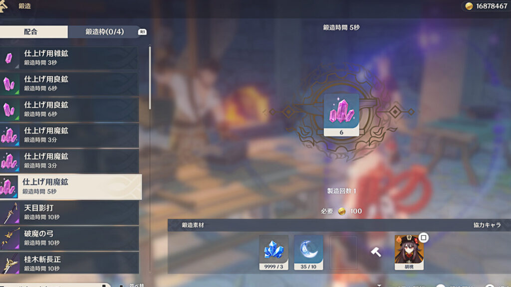 仕上げ用魔鉱×6の鍛造に必要な素材とは