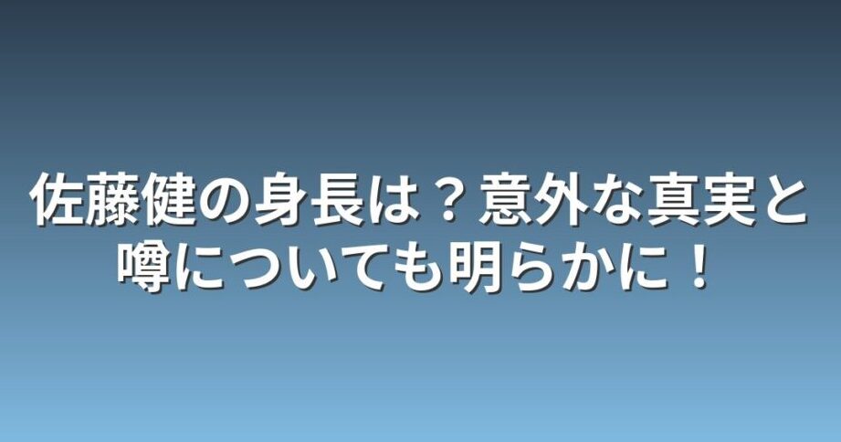 私たちは、佐藤健の身長はいくつ?という疑問を持つファンに向けて、彼のプロフィールや詳細情報を詳しく掘り下げます。日本のエンターテインメント界で活躍する佐藤健は、その魅力的な演技だけでなく独特のスタイルでも知られています。彼の身長は多くの人々が興味を持っているポイントです。