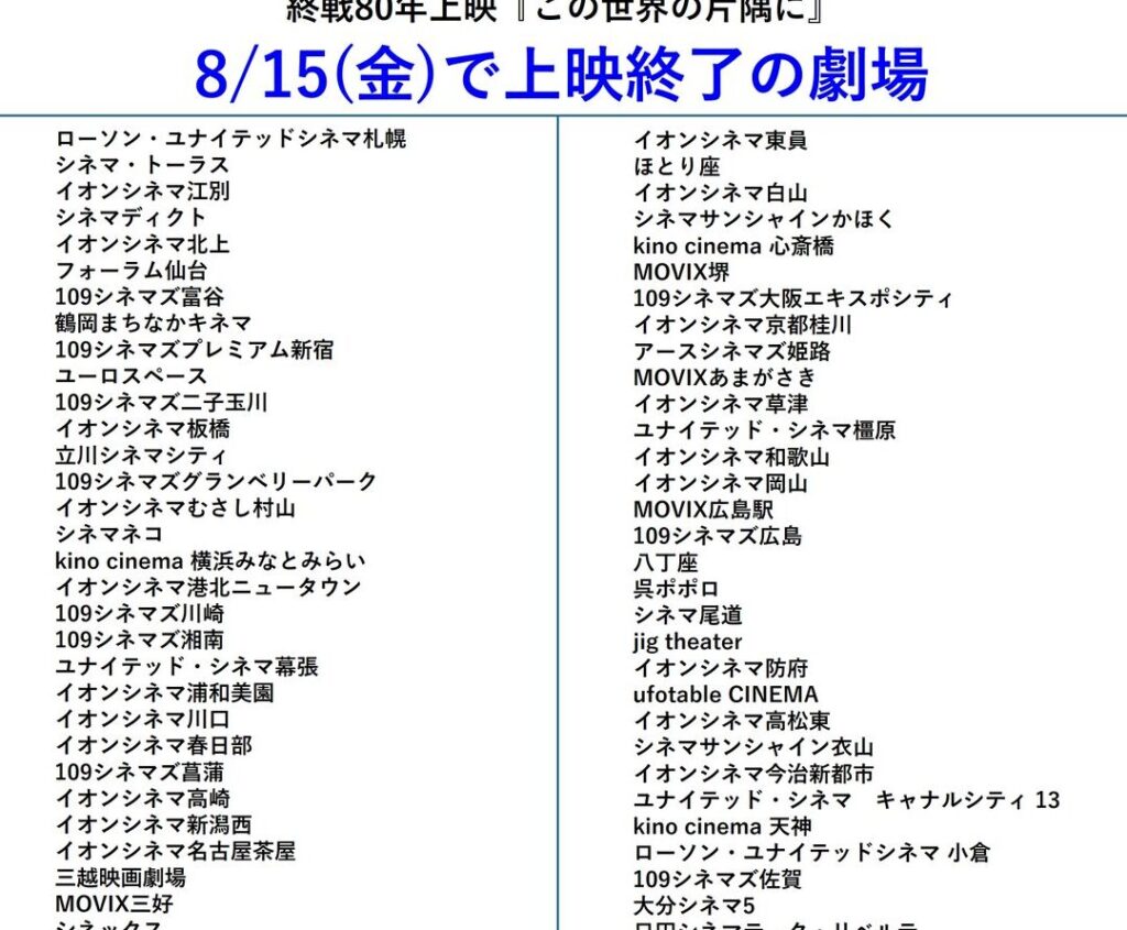 上映館情報まとめ この世界のさらにいくつもの片隅に