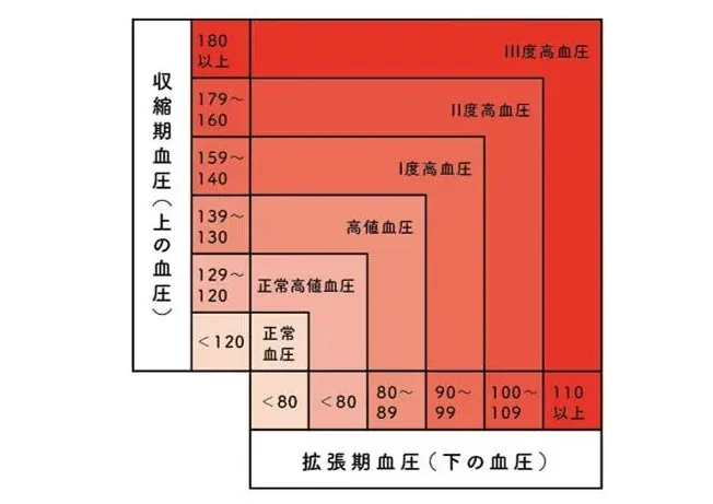 - 高血圧ステージ1: 収縮期 140-159 mmHg または 拡張期 90-99 mmHg