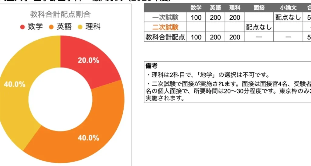 - 数学: 数学では、問題解決能力だけでなく、論理的思考力も重要です。特に応用問題が増加しているため、過去問や模擬試験を通じて実践的な練習を行うことが望ましいでしょう。