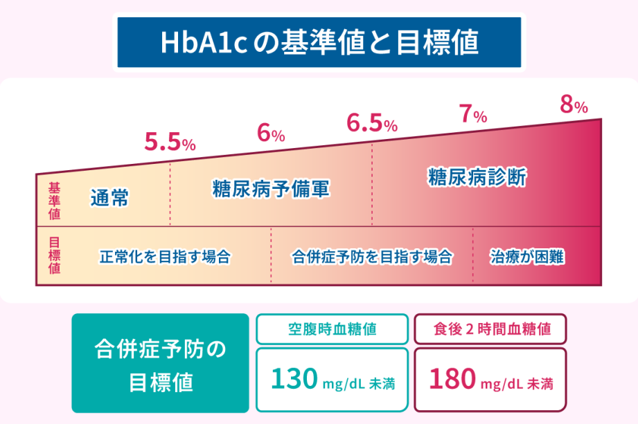 - 5.7%未満:正常範囲ですが、リスク要因(肥満、高血圧、高脂血症など)がある場合は注意が必要です。