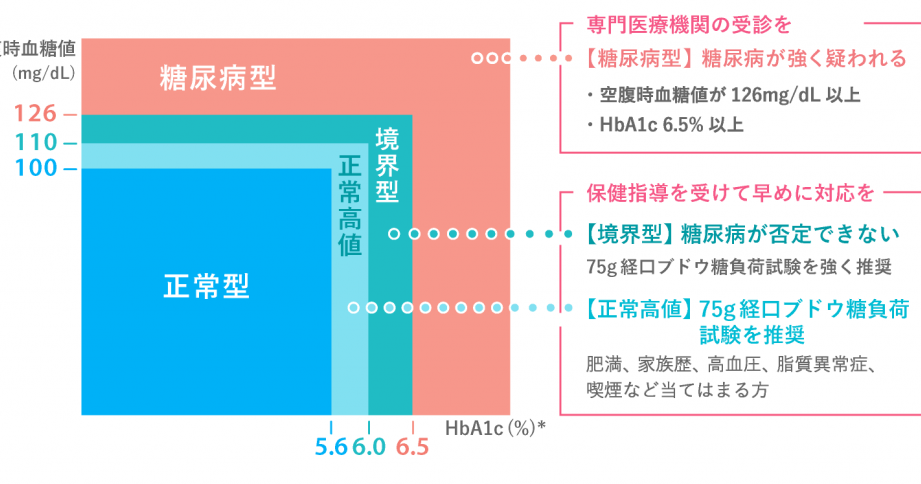 - 空腹時血糖値:100~125 mg/dL