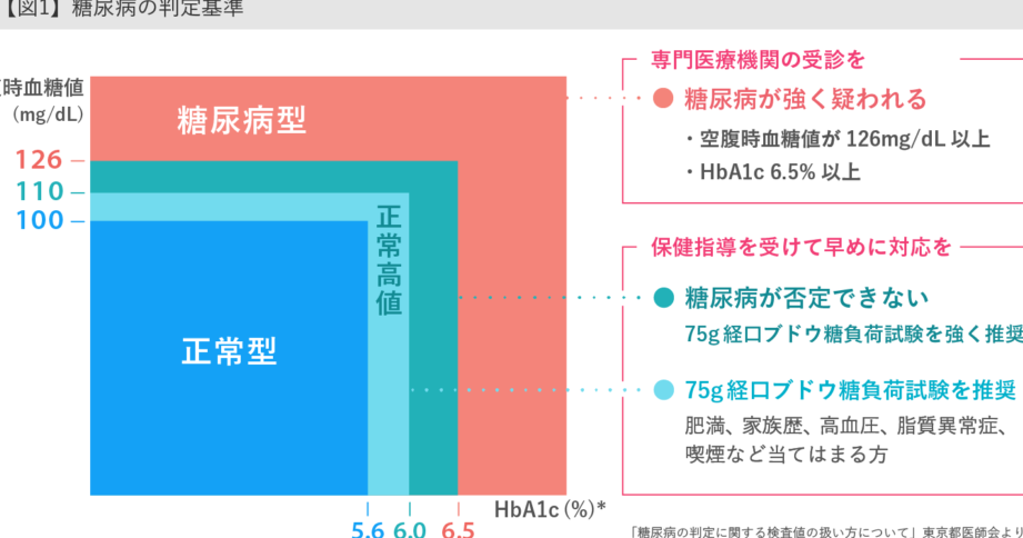 | 前駆症状(境界型) | 100〜125 | 140〜199 | 5.7〜6.4 |