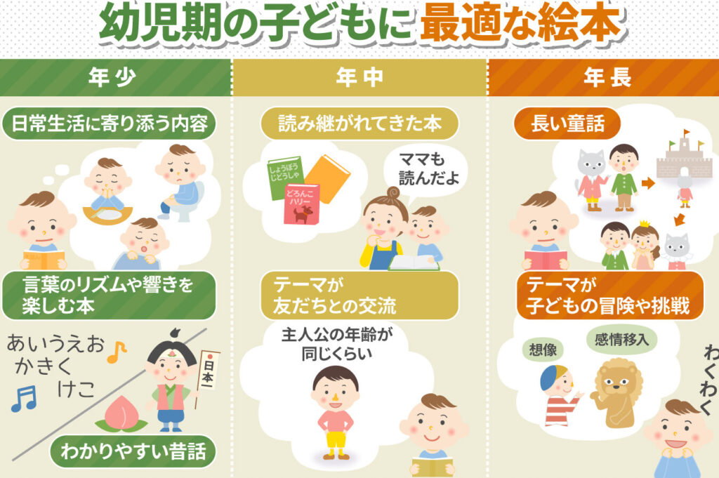 - 言語能力の促進: 読み聞かせの際には親や教師との対話が生まれるため、新しい単語や表現を学ぶきっかけとなります。特に質問形式の内容は、自分から考える力も育てます。