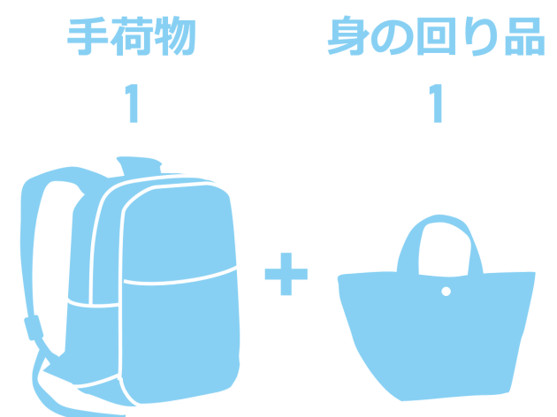 | LCC(格安航空会社)例:Peach Aviation | 1個(最大7kg)※別途購入可能なオプションあり。 | – | – |