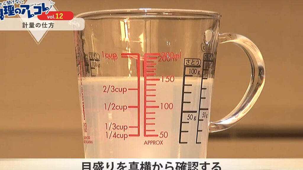 - レベルで測る: 大さじや小さじで材料を測る際は、表面が平らになるように水平にしてから取り出します。この方法で余分な材料が落ちず、正確な分量になります。
