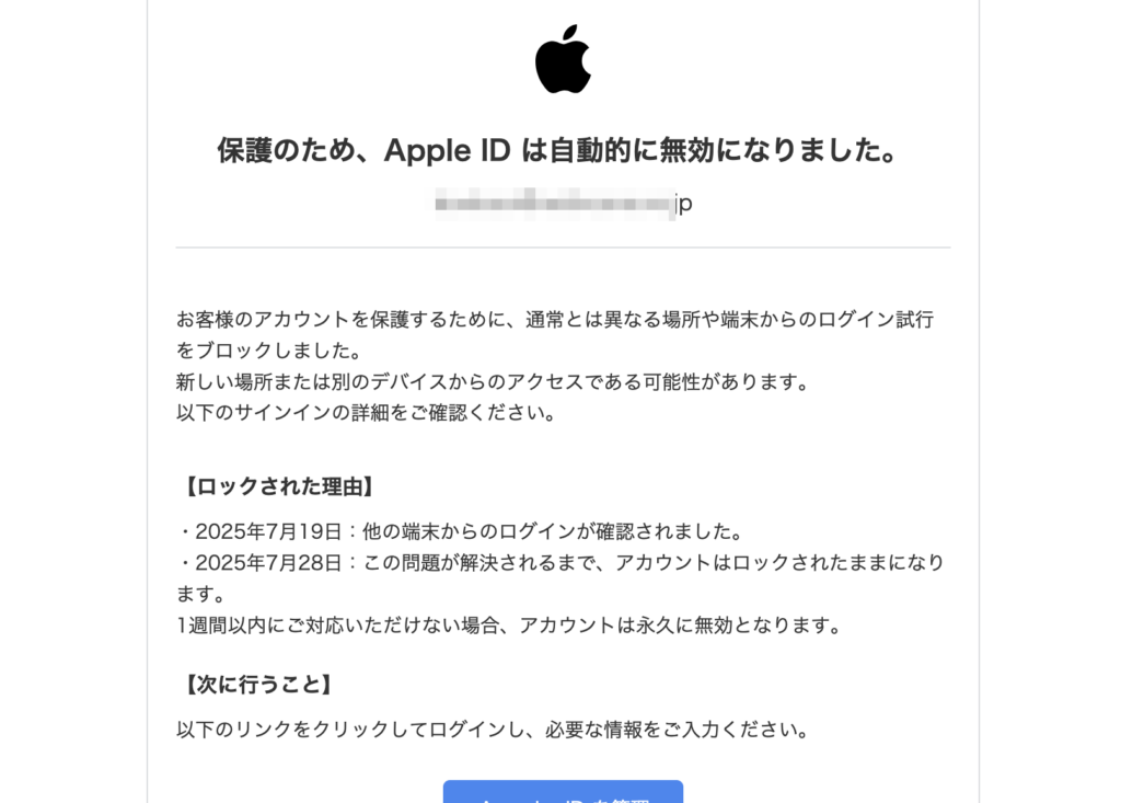- Aρρleからのお知らせ確認: 公式から送信されるセキュリティ関連のお知らせには注意してください。