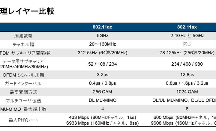 802.11n, 802.11ac, 802.11ax の比較