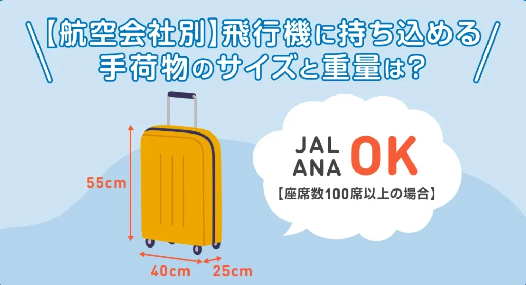 手荷物のサイズは特に重要です。通常、多くの航空会社では最大寸法として以下のような基準があります。