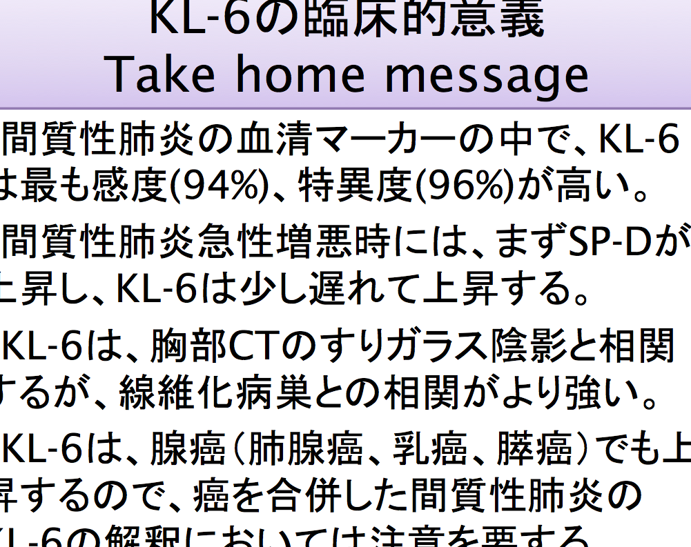 - 細胞損傷の指標: KL-6値が高いことは、肺胞細胞が損傷を受けている証拠とされています。