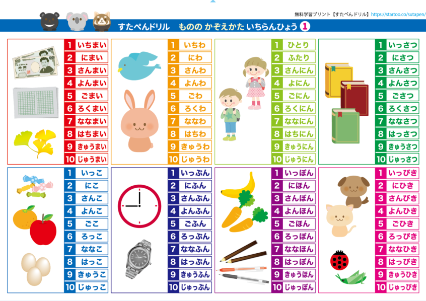 - 例: 本(ほん:本・冊)、個(こ:個体・単位)。