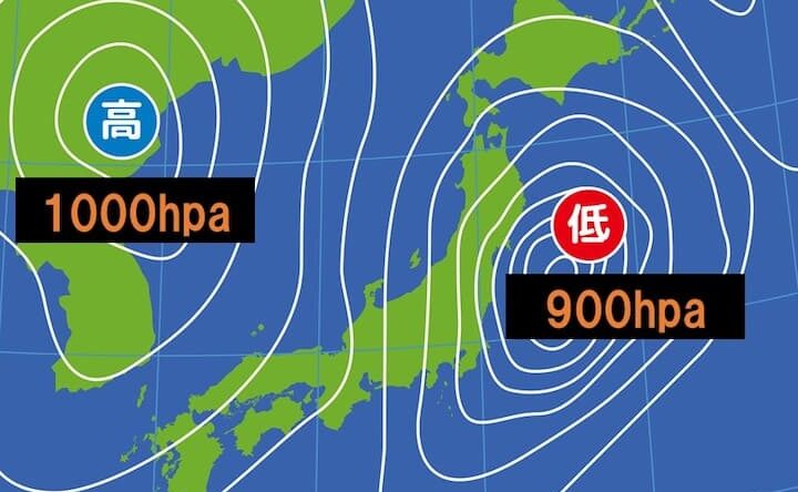 - 高度:標高が上がるにつれて、空気分子の数が減少し、これにより気圧も低下します。