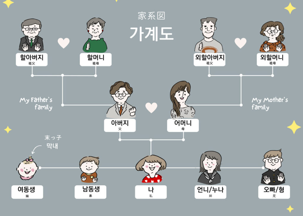 Korean culture places a strong emphasis on respect and hierarchy, especially when it comes to family relationships. Therefore, it’s important to use appropriate terms of address based on the age and status of the person you are speaking with. For instance: