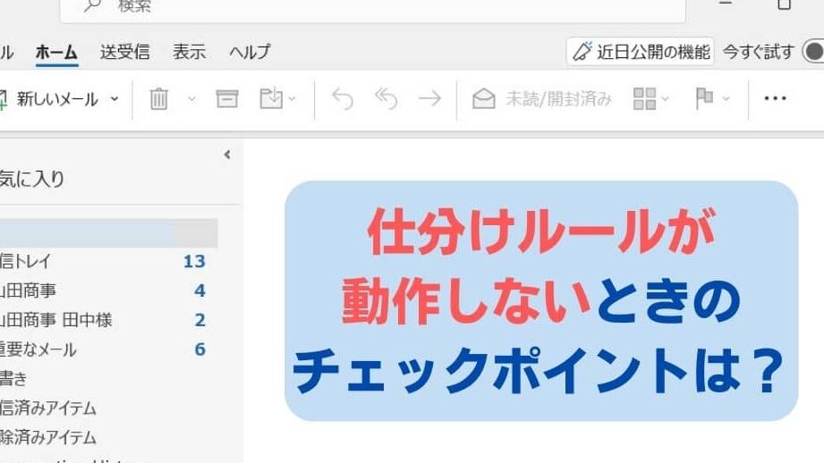 - 共有メールボックスの場合: 共有メールボックスの場合は、その設定によって仕分けルールが影響を受けることがありますので、関連する設定も確認してください。