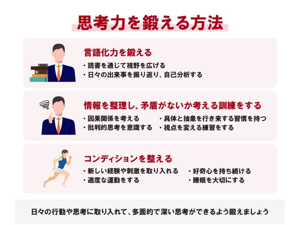 - 自己反省: 自身の行動や結果について定期的に振り返り、改善点を見出す。