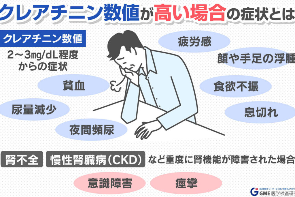 高いクレアチニン値には以下のような健康への影響があります: