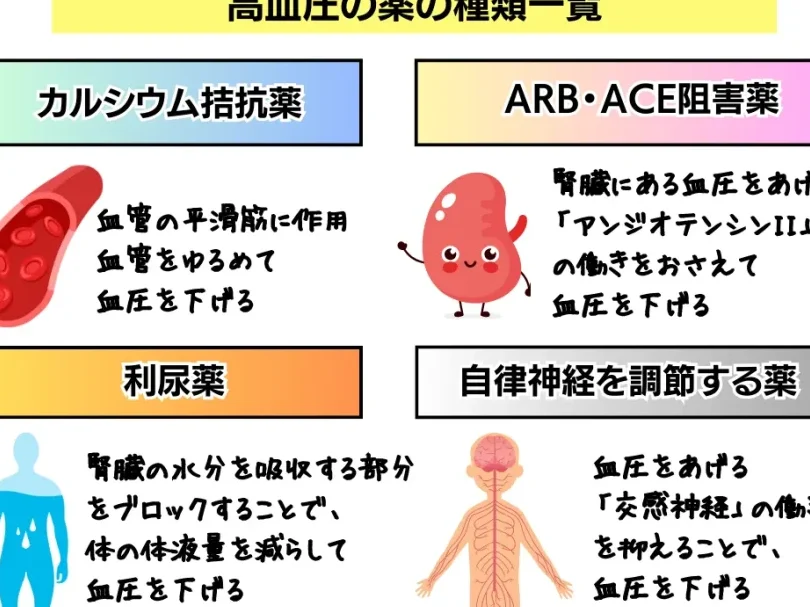 血圧の薬にはさまざまな種類がありますが、それぞれに特有の副作用があります。以下は一般的に見られる副作用です。