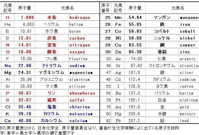 - 原子量は周期表によって異なる場合がありますので、最新情報をご確認ください。